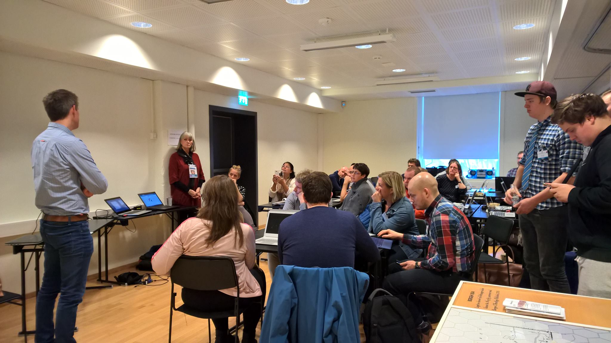 Vi hadde en ide om cirka 20 deltakere på workshopen, og fylte raskt opp disse plassene. Til tross for litt tekniske problemer kom vi igang nesten på riktig tid. Jeg kunne fortelle litt om meg selv, Grinde skule og våre prosjekter. Videre snakket jeg om en tverrfaglig bruk av Sploder, med fokus på å sette spilldesign inn i en kontekst, der lesing, skriving og sosiale ferdigheter er minst like viktig som spilldesignen.