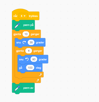 I dette undervisningsopplegget bruker elevene Scratch til å vise at de har forståelse av ulike geometriske figurers egenskaper, samtidig som de får vist at de kan grunnleggende koding av blant annet løkker.