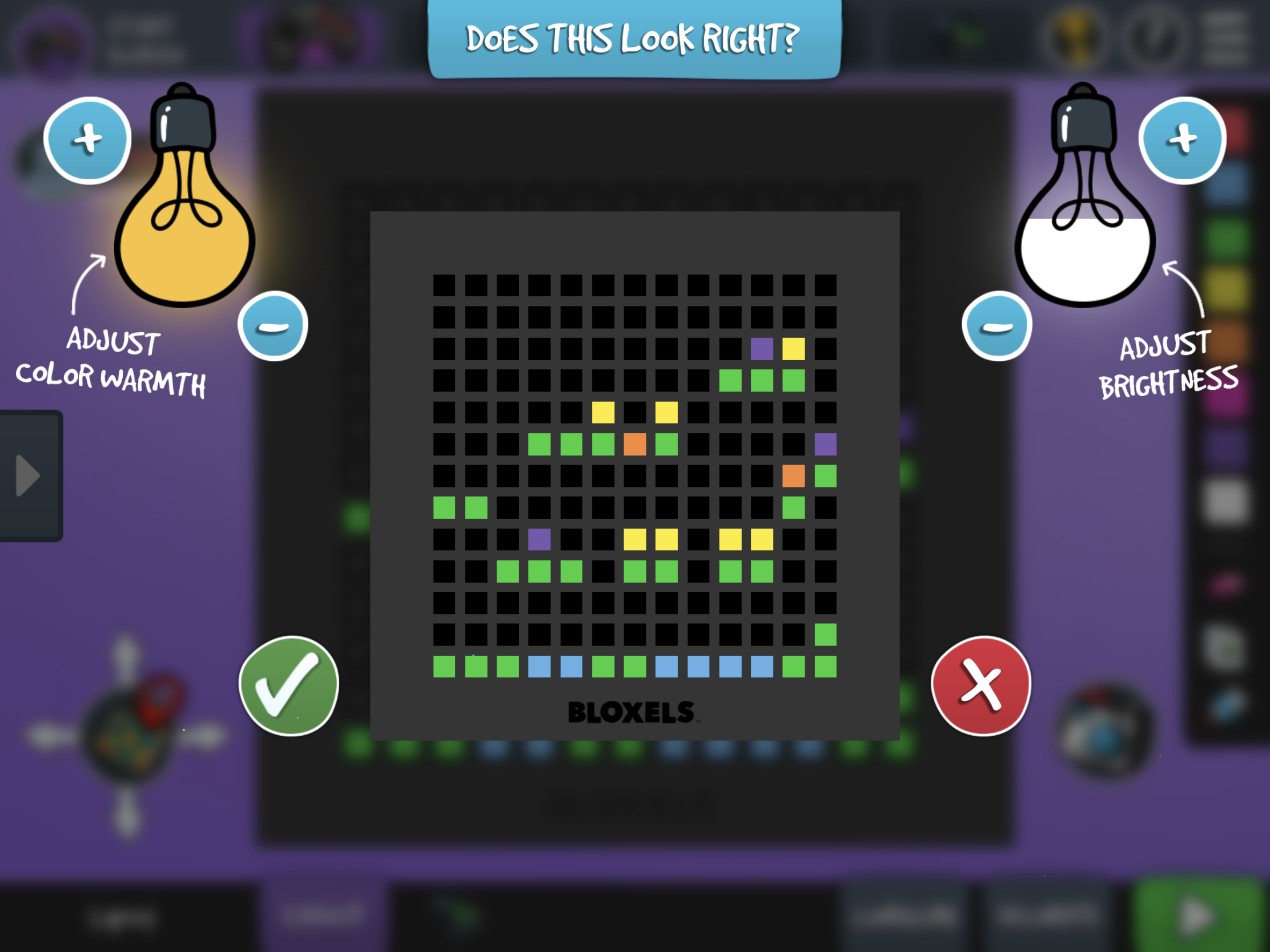 Bloxels er et fysisk brett på 13×13, hvor en ved hjelp av brikker kan designe figurer og spillverdener, for så å importere dem til appen via kameraet hvor en gir liv til både figurer og verdener. Brettene med brikker kan kjøpes flere steder, og koster omlag 800 kr per boks, men det er mulig å lage spill uten brett og brikker. Brikkene har ulike farger, som har ulik funksjon. F.eks. er blå brikker vann, grønne brikker gress og gule brikker mynter.