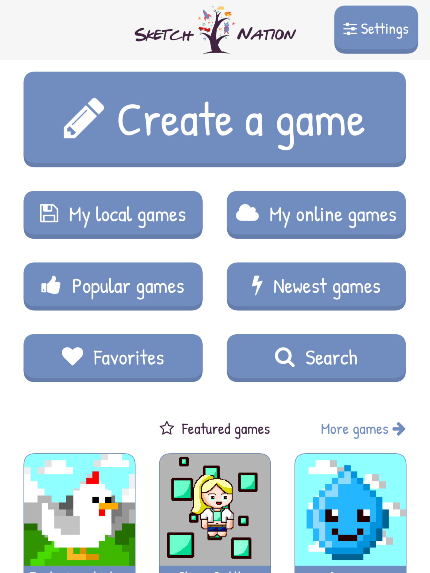 Sketch Nation Create er et nytt bekjentskap, som jeg skal i gang med i 3.klasse. Det er en gratis app som ved hjelp av tegninger lar barn lage og dele spill. En kan velge flere ulike sjangre(action, adventure, puzzle) og innenfor hver sjanger er det flere ulike stilarter. Videre kan en velge vanskelighetsgrad og detaljnivå.