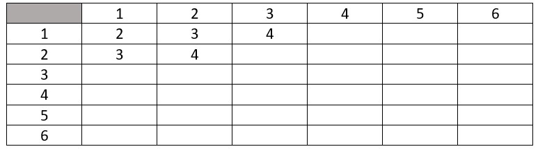 Sett de mulige utfallene av kast med to terninger inn i en tabell, og plasser summen av de to terningene inn i tabellen.