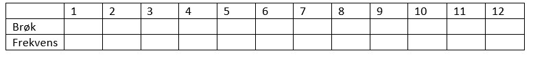 Foreta en analyse sammen med elevene og se etter mønstre og sammenhenger. Finn brøkene for de ulike utfallene og deretter frekvensen for utfallet. Sett inn i en tabell.