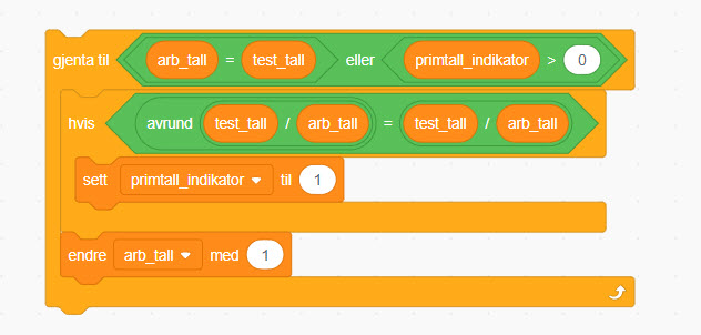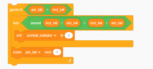La oss derfor lage et program i Scratch som vi kan bruke for å sjekke om tallet vårt er et primtall eller ikke.