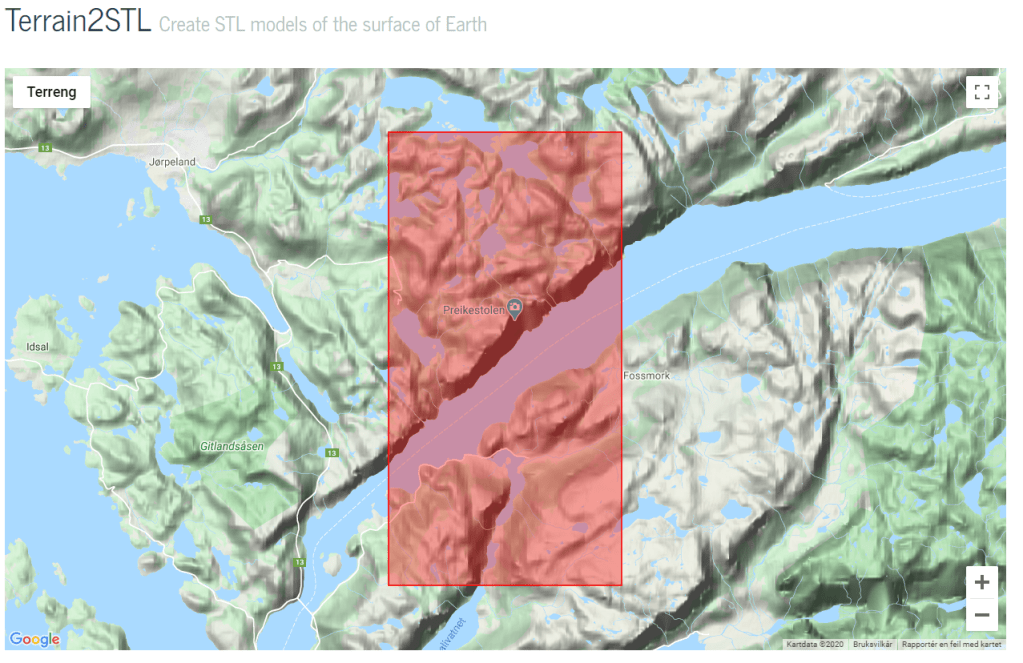 Tjenesten Terrain2STL er en ganske enkel, men nyttig tjeneste som gjør kart om til fysiske 3D modeller, som viser hvor store/små geografiske holdepunkt er i forhold til andre geografiske holdepunkt.