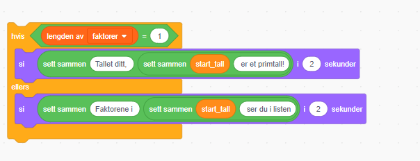 La oss derfor lage et program i Scratch som vi kan bruke for å finne primtallene som finnes opp til et gitt tall.