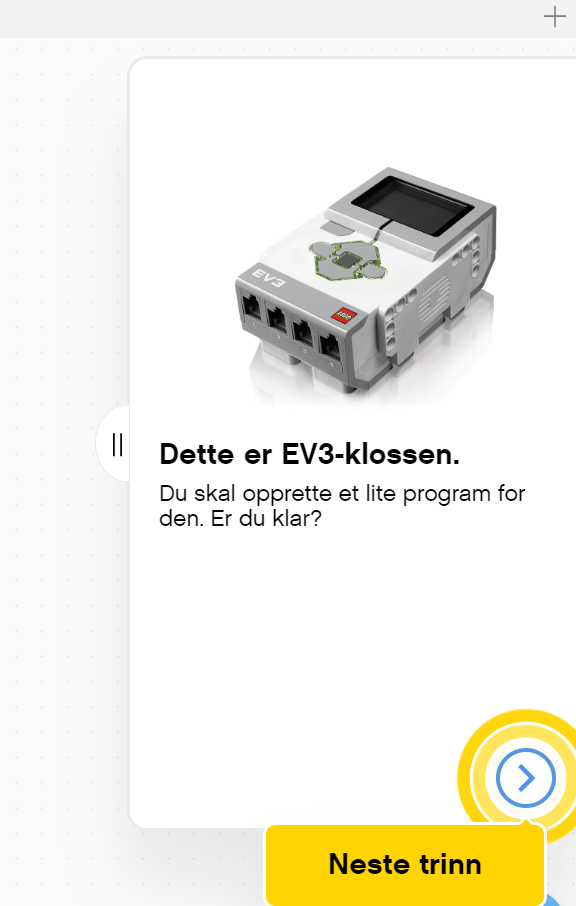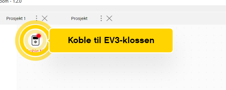 Fra hjemsiden som kommer fram ved oppstart, får en tilgang til 3 start prosjekter som gir brukeren en rask innføring i hvordan en EV3 fungerer.