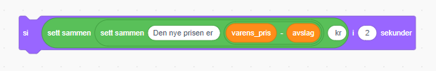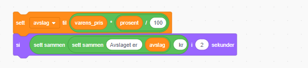 Dette undervisningsopplegget handler om å lage en enkel kalkulator i Scratch som regner ut hvor stort avslaget er og hva den nye prisen er.