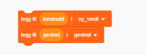 Vi foretar en enkel beregning og finner ut hvor mye gevinsten er, og plasserer i en variabel.