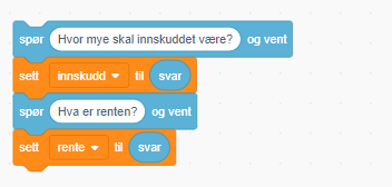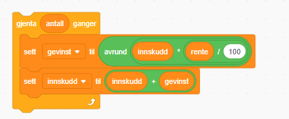 En variant av den enkle renteberegneren finner du her: https://scratch.mit.edu/projects/478612440
