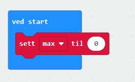 Vi oppretter en variabel kalt max, som skal ta vare på verdien av den maksimale akselerasjonen som microbiten blir utsatt for. For å være sikker på at den er null hver gang vi starter, setter vi den til null ved oppstart. Altså er det tenkt å resette microbiten hver gang det skal gjennomføres et nytt forsøk.