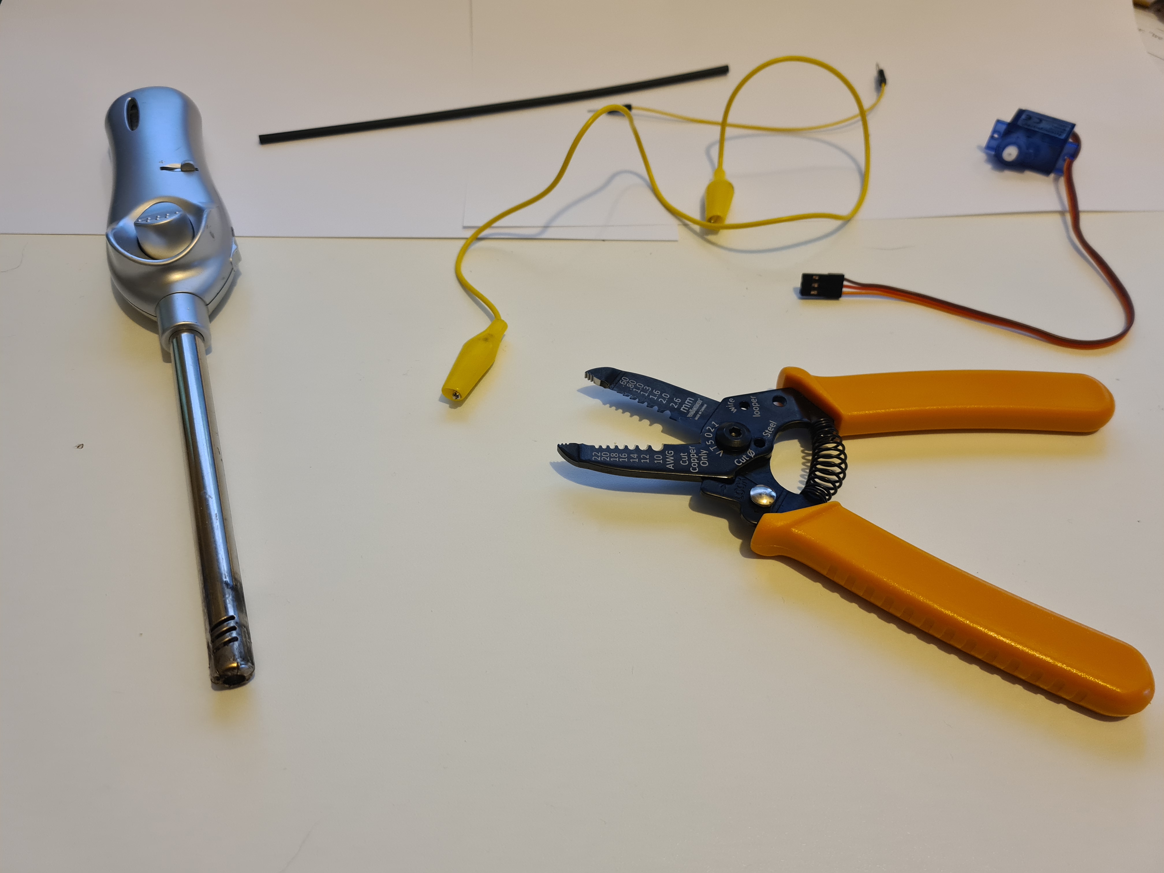 Så la oss se på hvordan vi kan lage en slik spesialkabel, uten for mye utstyr og for mye styr. I dette eksempelet har jeg bestemt meg for å beholde koblingen som finnes på servoen, da du senere kan få bruk for denne om den skal kobles via koblingsbrett.