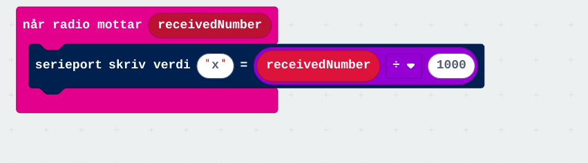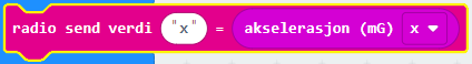 Merk at jeg deler tallet jeg mottar med 1000, da microbiten registrerer microG, ikke vanlige G-krefter.