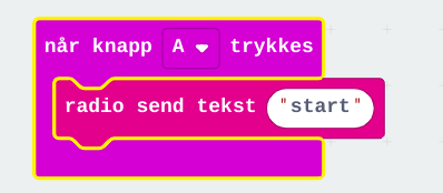 Deretter sender vi en startkommando til den andre microbiten, slik at den kan begynne å måle data med akselerometeret. For å gjøre det veldig enkelt, sender jeg kommandoen «start».