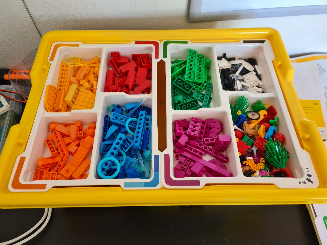 Har du jobbet mye med Lego Education sett, vet du at det er nærmest umulig å holde orden i kassene etter at de er åpnet. Med Lego Spike Prime ble det betydelig lettere å rydde enn tidligere, mens man med Spike Essentials har tatt steget enda lengre, og har laget et sorteringsbrett basert på farger. Det blir spennende å se om dette gjør det mulig å holde kassene mer ryddig enn tidligere.