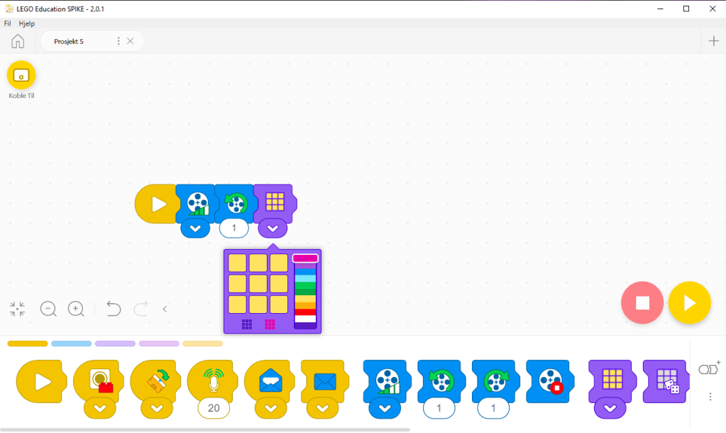 I programmeringsverktøyet vises også hvilke enheter som er koblet til huben, samt eventuelle verdier de måler.
