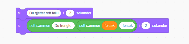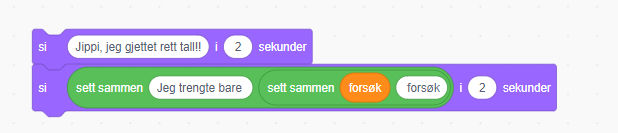 Steg 10 – Gi tilbakemelding til brukeren når de finner rett tall