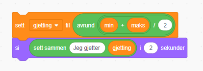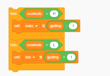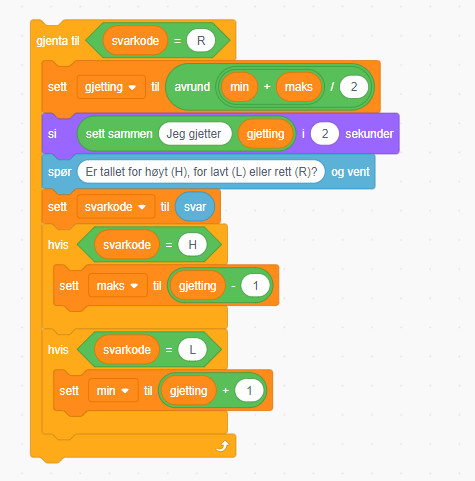 Om datamaskinen ikke har rett svar, må intervallet justeres. Altså må min eller maks-grensene endres. Om datamaskinens svar er for høyt, må maks-grensen justeres ned. Om den er for lav, må min-grensen justeres opp.