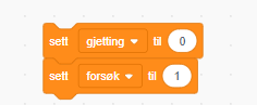 Vi trenger noen variabler. Vi lager en til ta vare på antall forsøk vi bruker for å komme fram til rett tall, og en til å ta vare på tallet som brukeren foreslår.