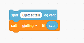 Vi skal så spørre brukeren etter et tall. Svaret skal legges inn i variabelen gjetting.