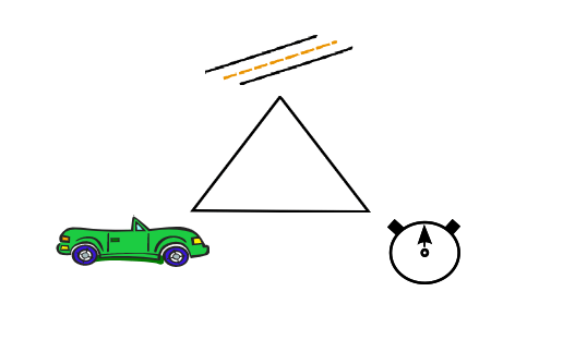 Bakgrunnen skal ha en trekant som indikerer vei-fart-tid trekanten. Tegn en trekant og plasser i midten av bakgrunnen. Deretter skal en bil, en timer og en vei plasseres i de tre hjørnene av trekanten. Bilen finnes i biblioteket, men timer og vei finnes ikke. De kan tegnes på egenhånd, en kan finne clipart på nettet, eller en kan laste ned disse to: timer.png og road.png