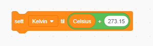 Når du trykker på knappen som er merket med Kelvin, så skal programmet spørre etter temperaturen i Kelvin. Svaret legges inn i variabelen med samme navn før vi begynner å regne om.