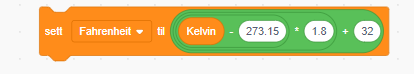 Når det gjelder omregning til Fahrenheit, kan en utnytte at en allerede har funnet Celsius og bruke dette i utregningen, eller gjøre hele jobben med å gå fra Kelvin via Celsius og så regne ut….