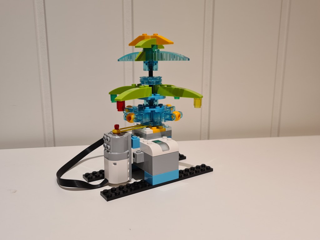 Dette er en aktivitet som er laget til juleverkstedet på skolen, inspirert av diverse bilder funnet på det store internettet. Den bruker et standard Lego WeDo 2.0 sett, og består av tegninger på en base, og deretter fri bygging på toppen. Det er ganske enkelt å bygge basen, og kreativiteten kan blomstre på selve treet.