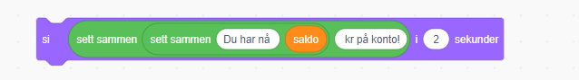 Vi setter sammen flere tekstbokser og viser verdien i variabelen saldo til slutt.