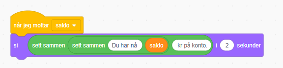 I koden til figuren, må vi legge inn kode som mottar meldingen «saldo».