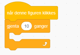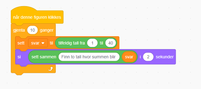Når denne knappen trykkes, skal brukeren få opp 10 svar som de skal lage oppgaver til. Vi trenger derfor en løkke som skal kjøres 10 ganger. En gang for hvert svar.