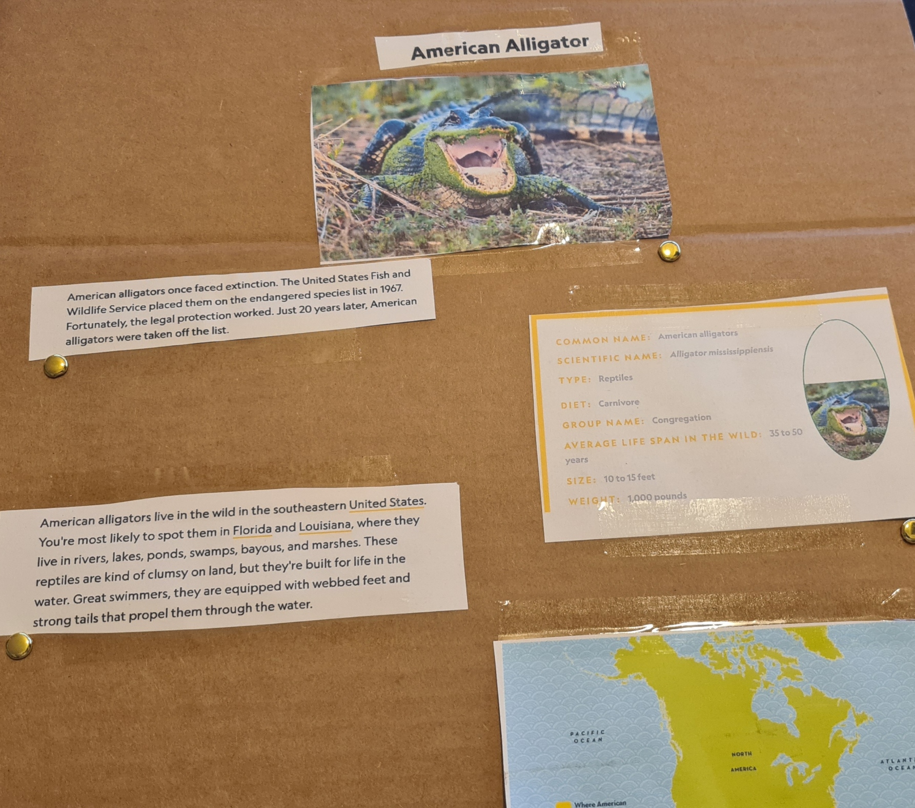 I dette eksempelet har jeg laget en informasjonsplakat på engelsk om den amerikanske alligatoren. Når de ulike splittbindersene trykkes, og jordingen er aktivert vil den gjennomføre koden som ligger under de ulike valgene.