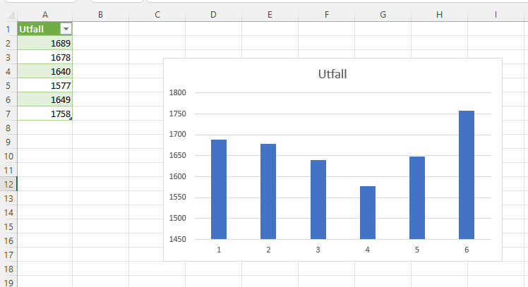 Foreta et stort antall kast, og se hvordan utfallslisten utvikler seg. Eksporter til regneark og illustrer som søylediagram. Gjør gjerne flere forsøk med 100, 1000, 10000 kast.