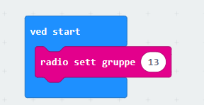 Vi skal kommunisere med flere microbits, så vi må sette opp en radiokobling mellom de ulike microbitene. Det er viktig at de ulike gruppene/elevene som arbeider sammen, får tildelt grupper som ingen andre grupper har.