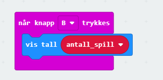 Når en trykker på knapp B, skal antall kast vises.