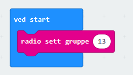 For å koble de to microbitene sammen, setter vi dem i samme gruppe. Dette gjøres under oppstart. Anbefaler at lærer deler ut grupper til elevene på forhånd.