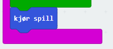 Når dette er gjort, skal vi gjennomføre selve spillet. Vi kan kode dette under telleren, men vi kan også flytte det til en egen funksjon, spill, for å gjøre koden mer oversiktlig. Funksjoner finner vi under Avansert i makecode.