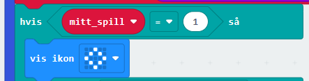 Den kaller funksjonen «spill» på akkurat samme måte som den gjorde før vi koblet microbitene sammen, men når den er ferdig å spille, sender den beskjed til «masteren» hva resultatet ble.