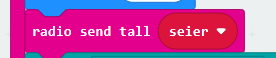 Master sender avgårde teksten «Spill» via radio til en annen microbit i samme gruppe.