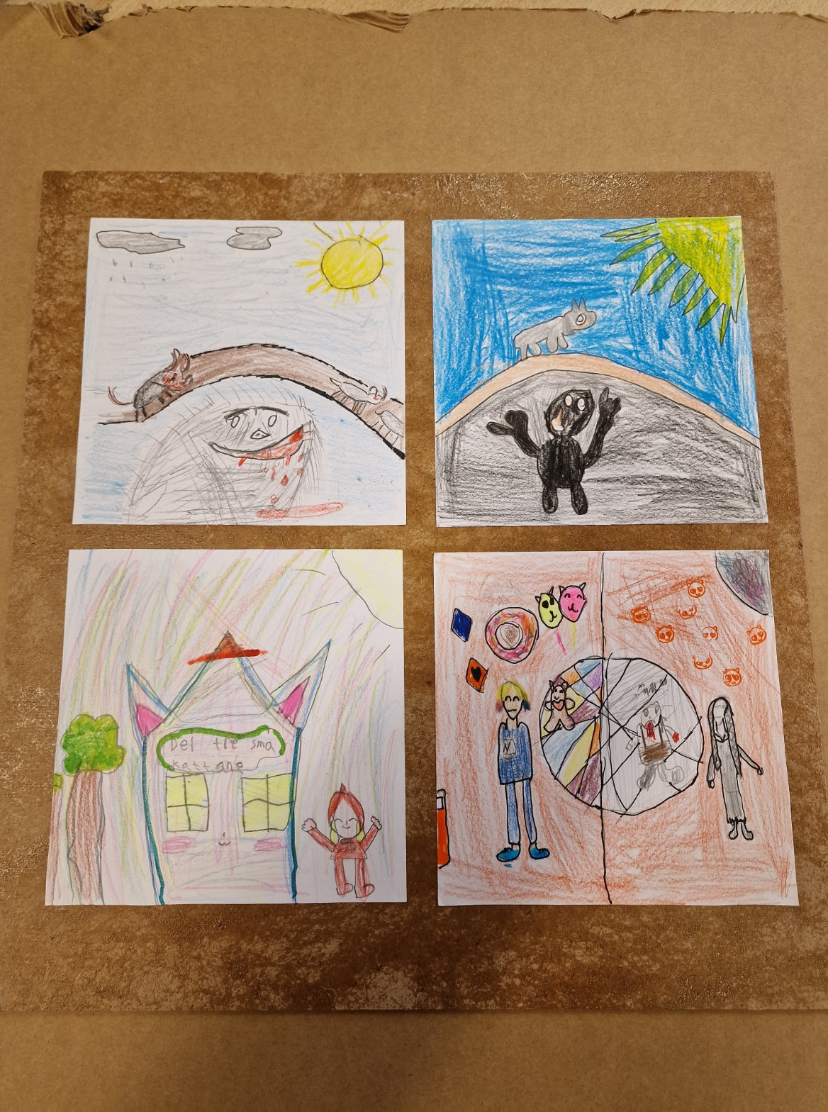 3.klasse skulle arbeide med eventyr, og som en del av temaet skrev de egne eventyr. De illustrerte eventyrene sine, og laget en tegning på 14×14 cm som de skulle lage puslespill av.