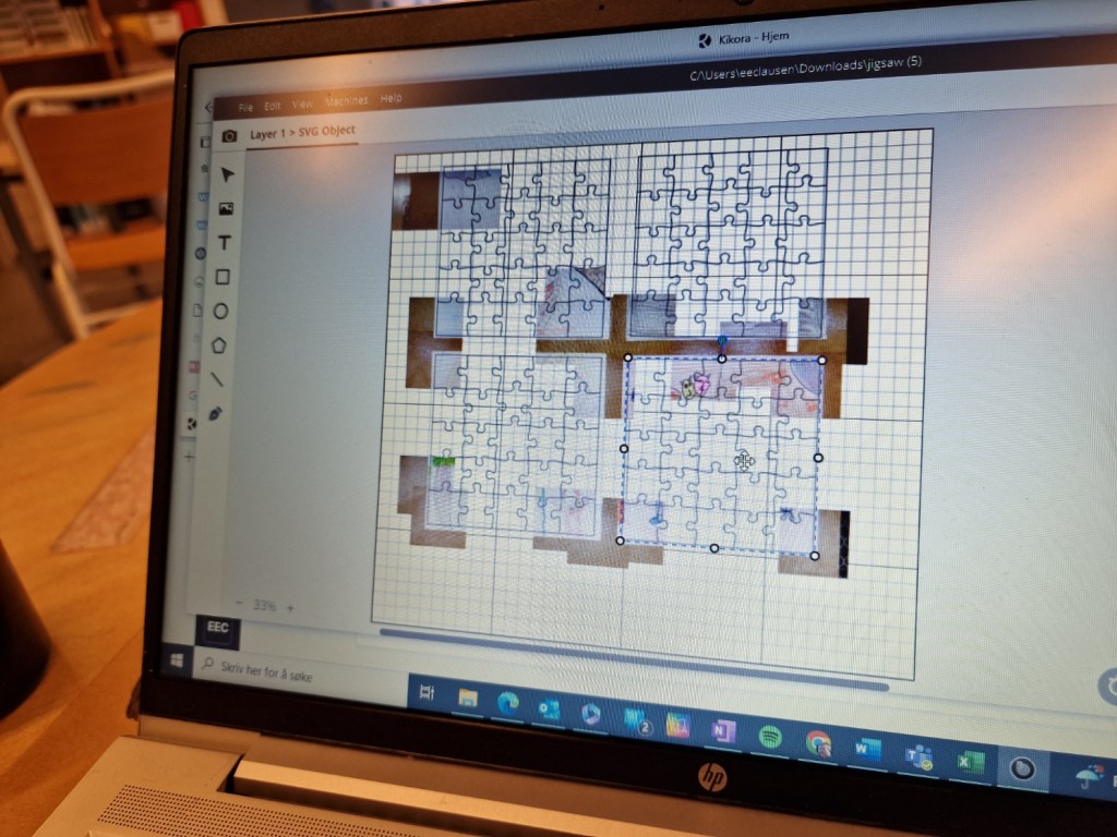 Da alle puslespill og bildet var plassert var det bare å sette i gang laserkutteren, og for noen flotte resultater!!! Elevene som var med på kuttingen, holdt på å falle opp i laserkutteren av ren begeistring.