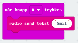 Det er viktig at en ikke deler radiogruppe med de som microbitene som ikke skal snakkes sammen. Det kan derfor være lurt at læreren deler ut grupper. Når vi skal sende signal, kan vi for eksempel koble det til en knapp, en sensor eller bruke klokken.