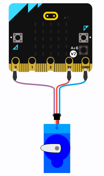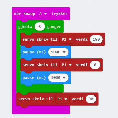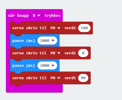 - Oransje kabel på servo skal kobles til P0 på microbiten