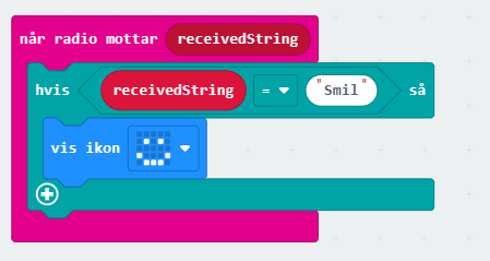 Microbiten som er mottaker, venter til den får et radiosignal og tester på koden den mottar. Mottar den tekst fra avsender, må vi teste på tekst. Mottar den tall, må vi teste på tall.