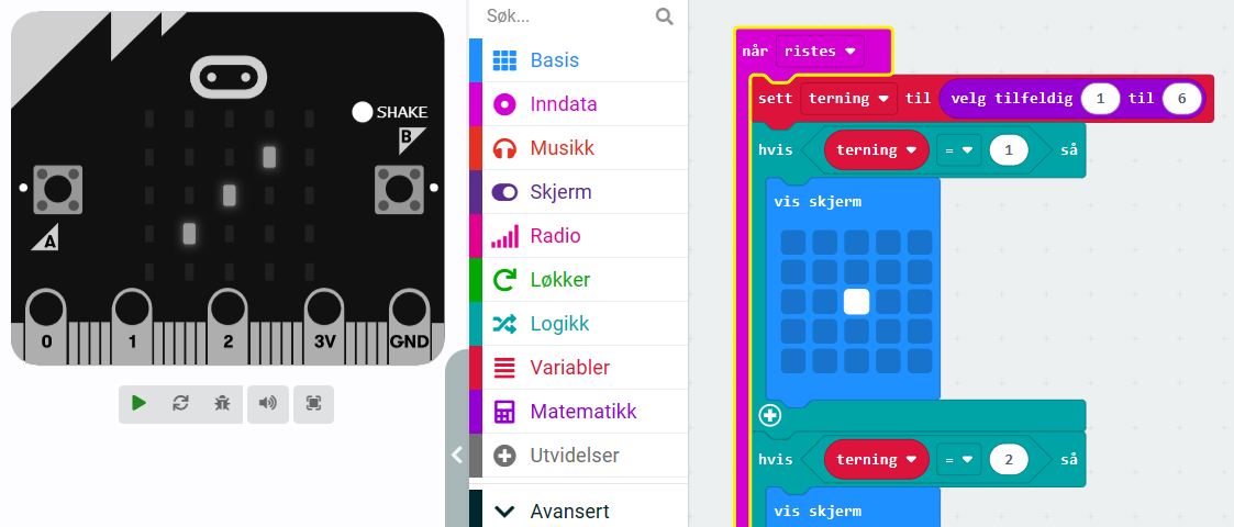 Læringsmål: – lage en digital terning ved å hente ut tilfeldige tall og deretter vise korrekt bilde til tallet