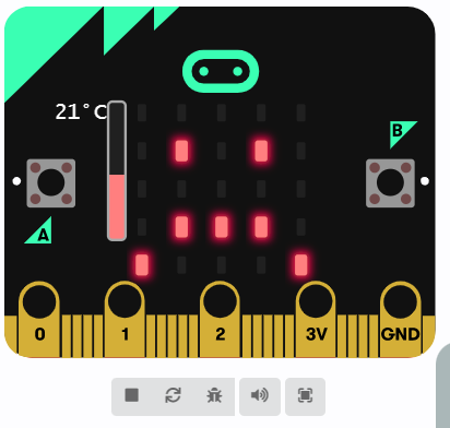 Dette er en oppgave som bruker temperatursensoren som finnes på micro:biten. Den måler temperaturen med jevne mellomrom, og viser et passende ikon etter temperaturen. Oppgaven kan enkelt utvides.