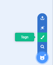Vi oppretter et nytt prosjekt, og sletter katten som ligger inne som eneste figur. Siden vi ikke har en passende bakgrunn skal vi lage en egen bakgrunn som ser ut som en elv, med litt grønt gress på hver side. Vi tegner en egen bakgrunn ved å velge tegneverktøyet på bakgrunnen nede til høyre.