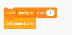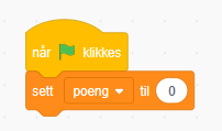 Når det grønne flagget trykkes skal spillet startes. Da setter vi poeng til null, altså må vi opprette en variabel vi kaller poeng. Denne variabelen skal vises på skjermen.