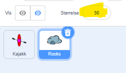 Finn en passende lyd og legg inn før spillet stopper. Test deretter ut hva som skjer om kajakk og stein kolliderer. Spilles det av en lyd? Stopper spillet?