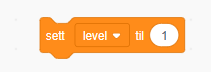 Vi lager en ny variabel som vi kaller «level». Denne setter vi til 1 når programmet starter, og vi plasserer den sammen med den andre variabelen, poeng (på kajakken). Denne variabelen trenger ikke vises.