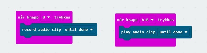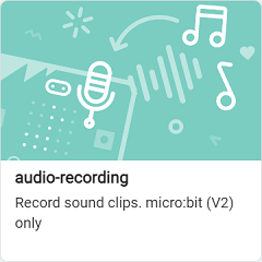 På v2 av microbit finnes en mikrofon. Denne kan brukes til å registrere lyd. Nytt i denne versjonen er et bibliotek som finnes under utvidelser, som lar deg ta opp og spille av lyd.